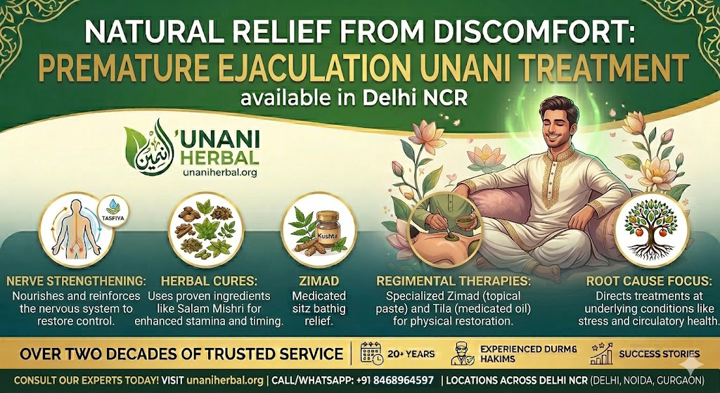 Unani Medicine (Tibb-e-Unani) offers a sophisticated, time-tested approach to Premature Ejaculation Unani Treatment available in Delhi NCR, focusing on nerve strengthening and hormonal balance rather than temporary stimulation.